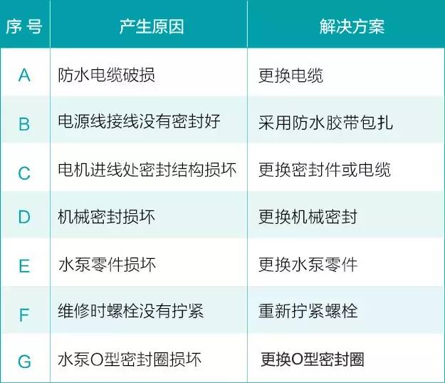 在一般情况下,水泵电机是不允许进水的(水浸泵例外)。电机进水有以下几种情况: